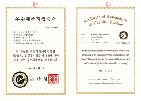 - 2018Renewable Energy Streetlight designated as an Excellent Product by Public Procurement Service